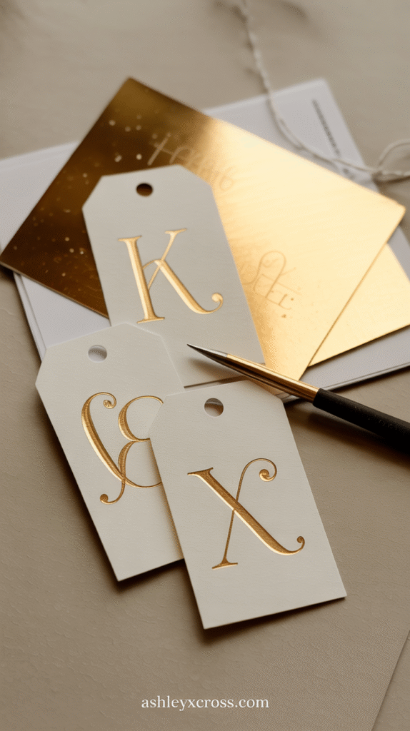 Add a touch of metallic luxury with Cricut’s Foil Transfer Tool. Monogram tags in gold or rose gold foil feel timeless, elegant, and expensive — even when they’re made from simple cardstock.