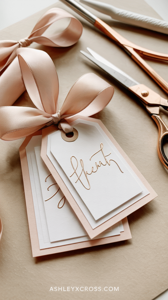 Pairing neutral cardstock with metallic or blush accents keeps your tags elegant and versatile for any occasion. Finish with a simple jute twine or silk ribbon.